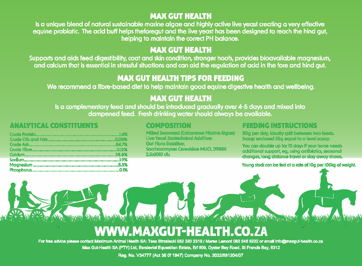 Highly palatable and can be fed alongside our unique and scientifically proven and researched Max-Joint Health and Max Hoof Health supplement.